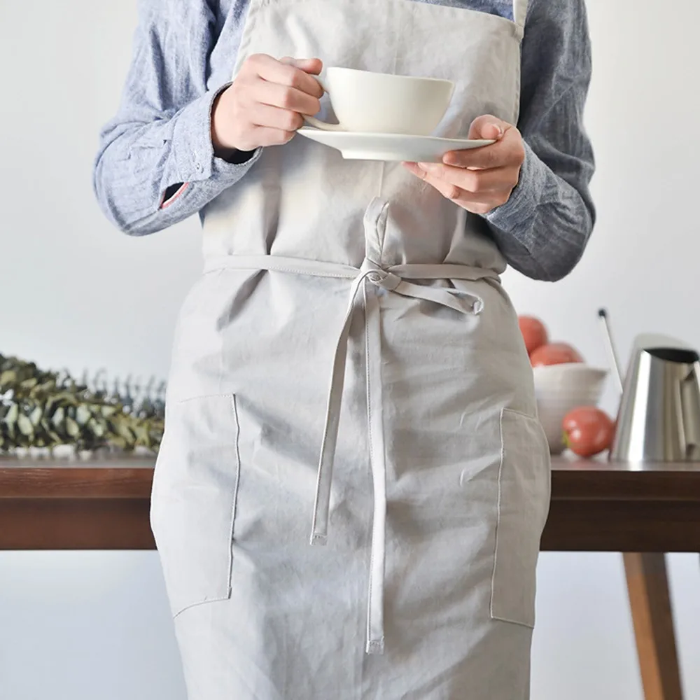 Kitchen Baking Overalls Nordic Style Cotton Sand Wash Apron Cooking Kitchen Double Pocket Apron Hou